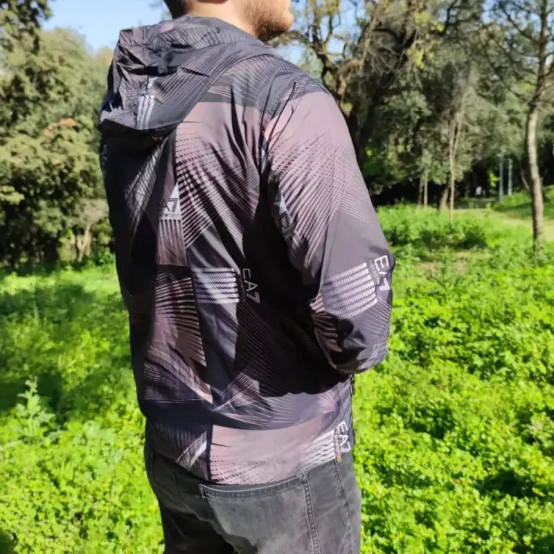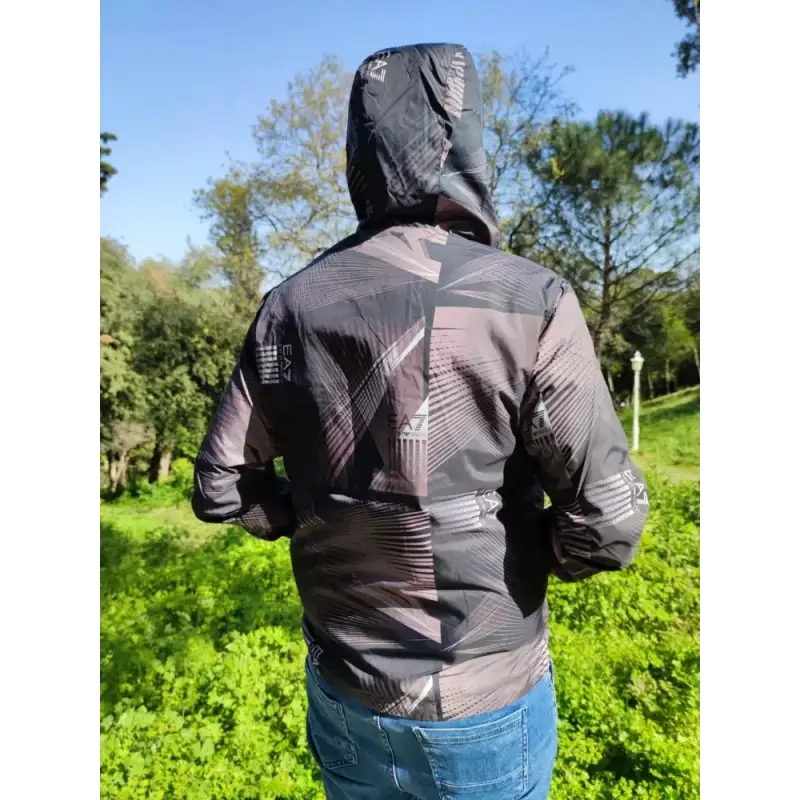 Ea7 Nuška Kapuška Vodootporna Kišna jakna u Crnoj i Pločastoj Nijansi