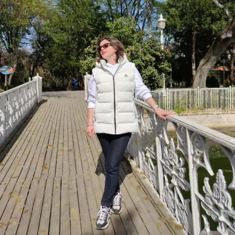 Vestë e fryrë me kapuç të bardhë për gra Mnclr-10687